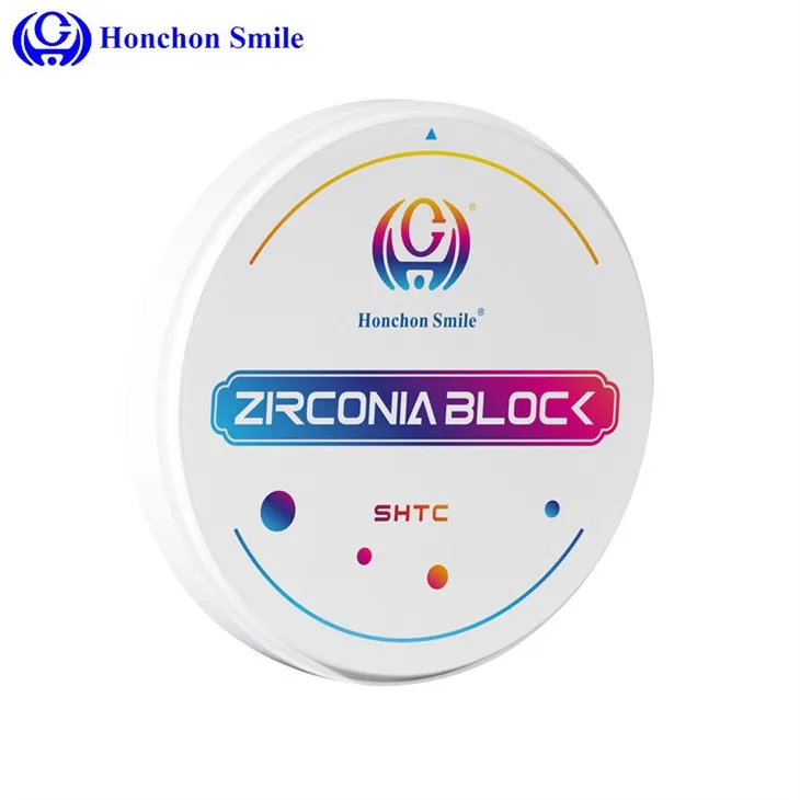 HONCHON's Smile preshaded zirconia este o încercare de succes de modernizare a tehnologiei. Culoarea SHT are caracteristici similare cu zirconia albă SHT, dar nu are nevoie de colorare. Ai putea alege diferite nuante in functie de nevoile tale, scurtand foarte mult timpul de realizare a dintilor. Pucks SHT-C Super High Translucent Color Zirconia pentru sistemul CADCAM este potrivit pentru realizarea de coroane și punți cu contur complet.